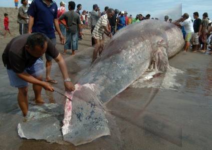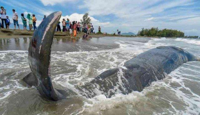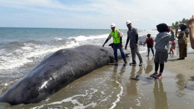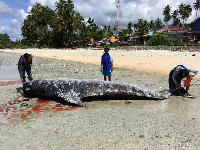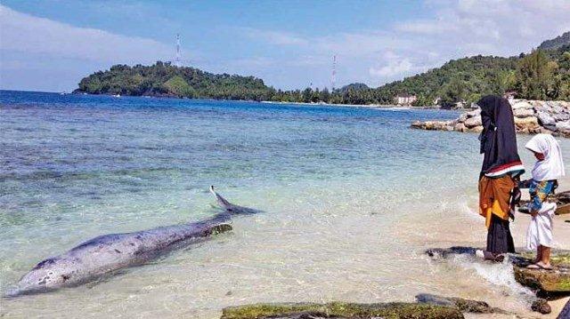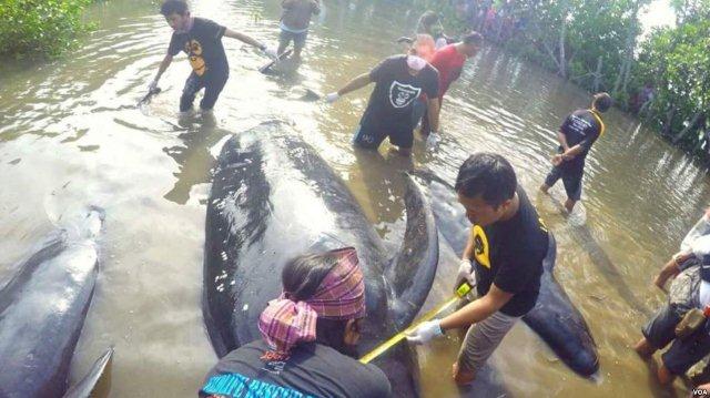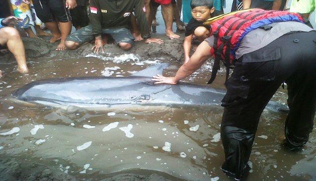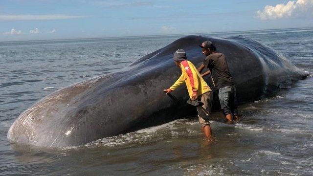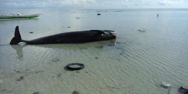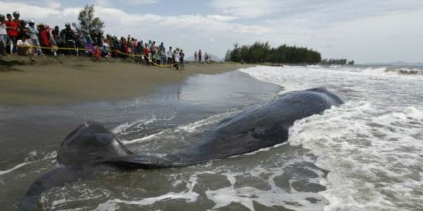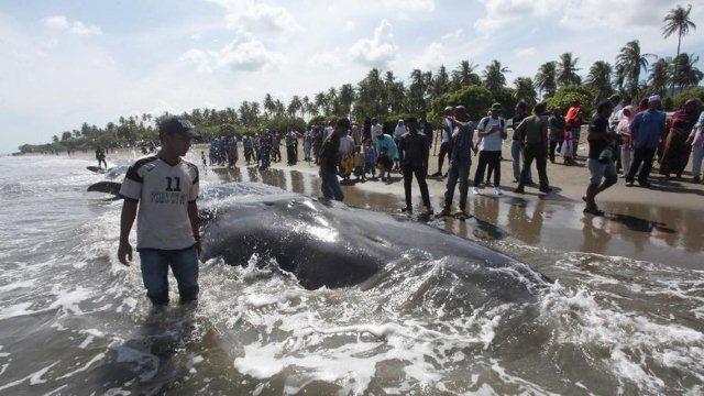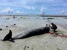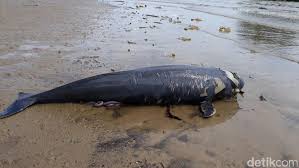 17 paus terdampar di pantai desa Menia Kabupaten Sabu Raijua, NTT. 6 paus berhasil diselamatkan dan 11 sisanya mati. Kejadian paus terdampar ini diduga karena perubahan iklim dewasa ini |
