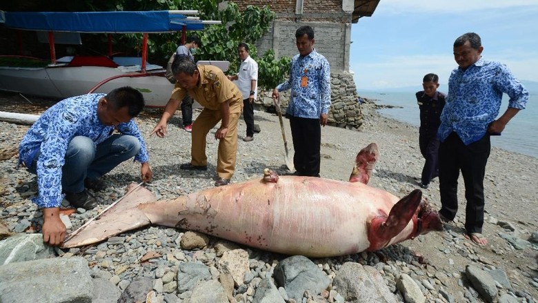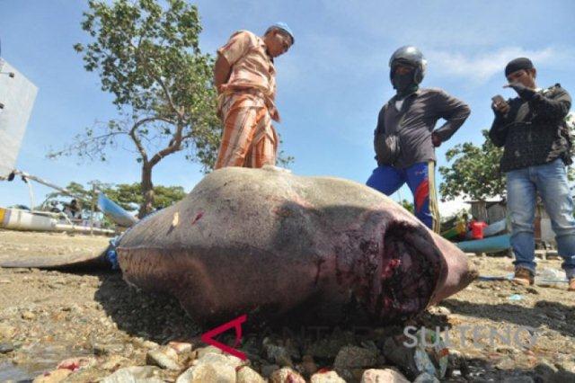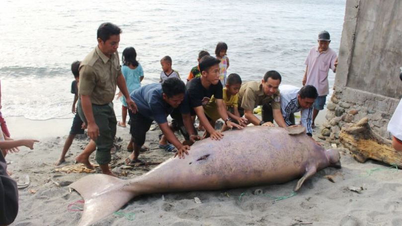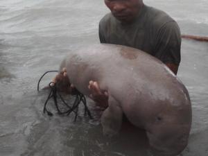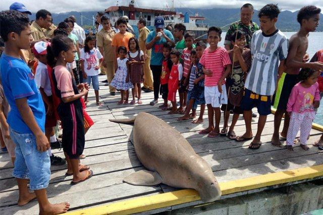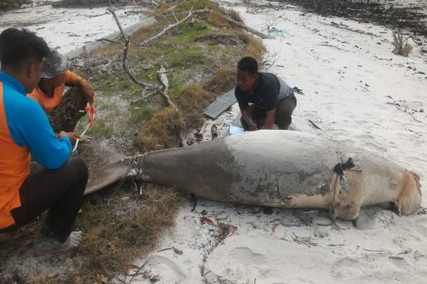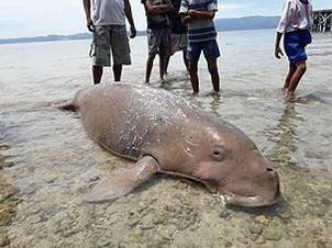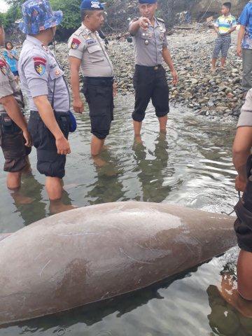 Seekor Mamalia Jenis Dugong (Dugong dugon) yang terdampar Desa Marantale, Kab. Parigi Moutong, Sulawesi Tengah |