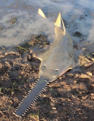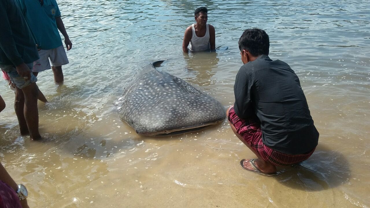 Hiu Paus ditemukan terdampar oleh Satker Palu BPSPL Makasar dengan DKP Kab. Parigi Moutong dan Nelayan di Pantai Tuini, Sulawesi Tengah dengan panjang 2,6m. Namun hiu tersebut sudah mati pada saat ditemukan. |