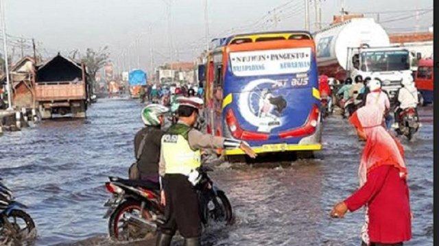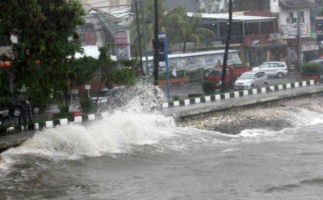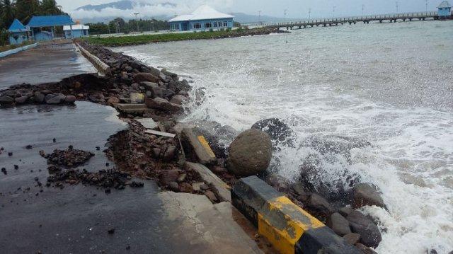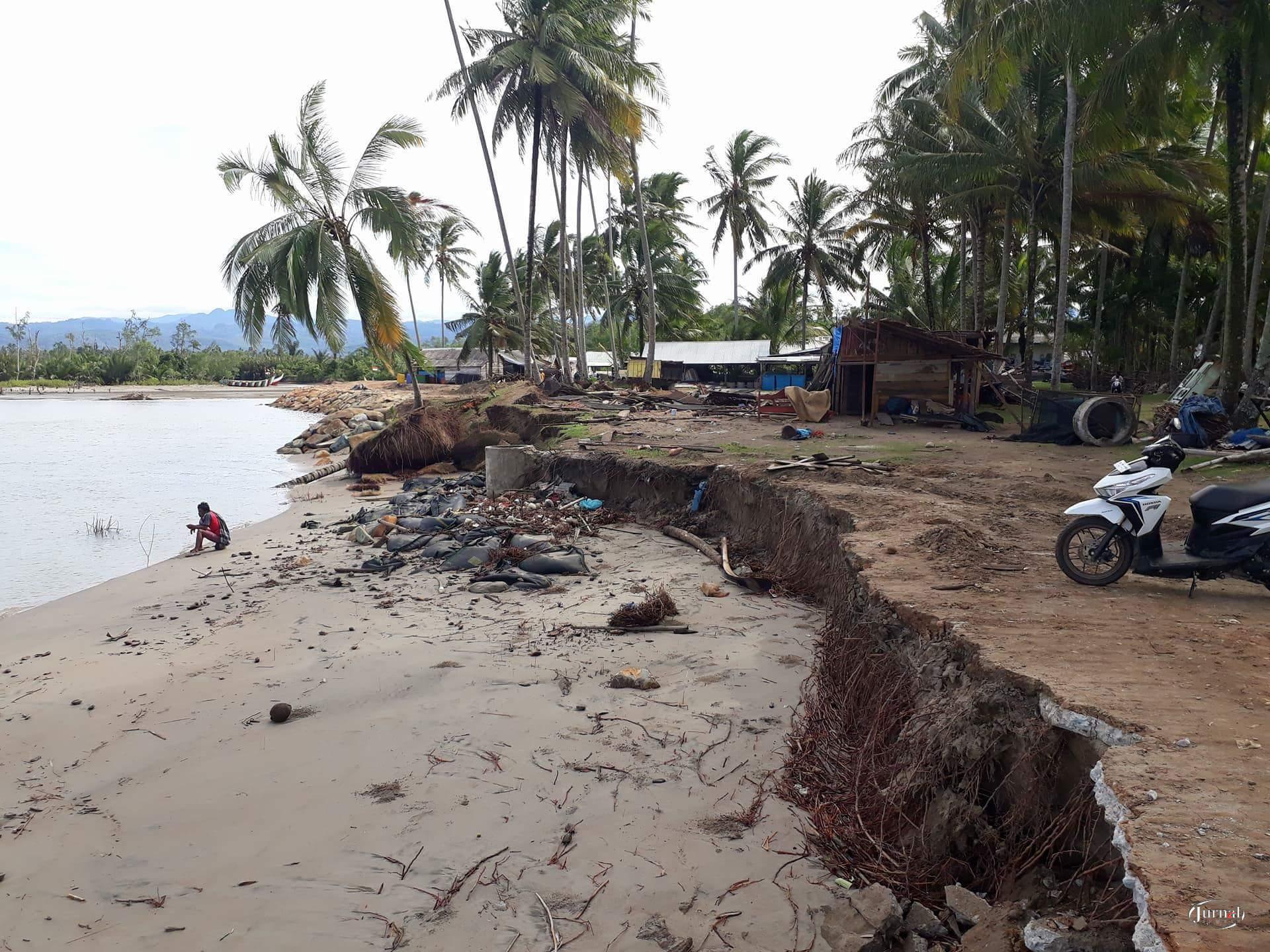 kejadian ini berdampak pada tergenangnya garis pantai hingga lebih dari 10m dari batas tinggi air laut pada saat surut.