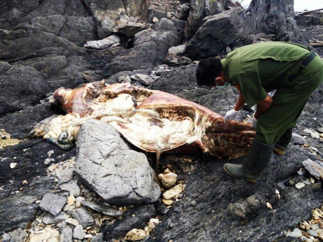 Dugong terdampar dalam keadaan mati dan kondisi sudah membusuk serta sulit terindentifikasi yang ditemukan di Desa Salulomba, kab. Donggala, Sulawesi Tengah oleh BPSPL Makassar dengan DKP Kab. Donggala. Penanganan selanjutnya dugong akan dibakar. |