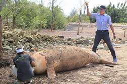 Mamalia Dugong (Dugong dugon) terdampar di Desa Lende Tovea, Kec. Sirenja, Kab. Donggala, Sulawesi Tengah dan diamankan oleh pihak Koordinasi Satker Palu BPSPL Makassar dengan DKP Kab. Donggala |