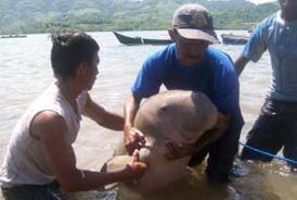 Seekor mamalia laut Dugong (Dugong dugon) terdampar di Kec. Pagimana, Kab. Banggai, Sulaweisi Tengah telah diamankan oleh pihak BPSPL Makassar. Mamalia tersebut masih dalam keadaan sehat. |