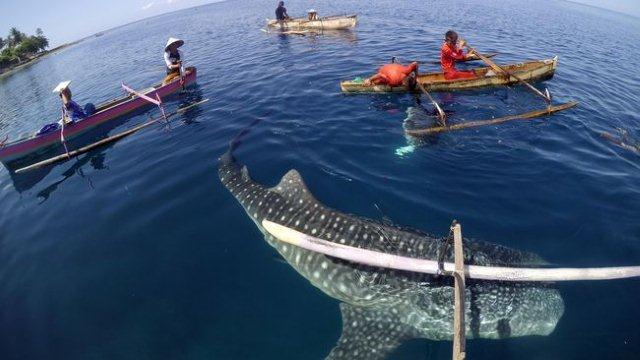 Hiu Paus yang terdampar di Desa Botubarani, Gorontalo ditemukan oleh BPSPL Makassar dengan DKP Gorontalo dan nelayan berjumlah 17 ekor dalam keadaan masih hidup dan tanpa luka. Hiu paus tersebut memiliki panjang 4-7m dan selanjutnya akan dilepasliarkan. |